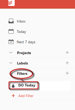 DO Today filter is the Do Today list in Todoist. See this list by clicking Filters, then DO Today (left pane). In order for this list to be accurate, you need to do your daily review.