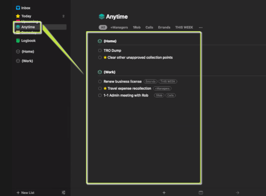 (left pane), then tag anything that you intend to do with THIS WEEK tag.
